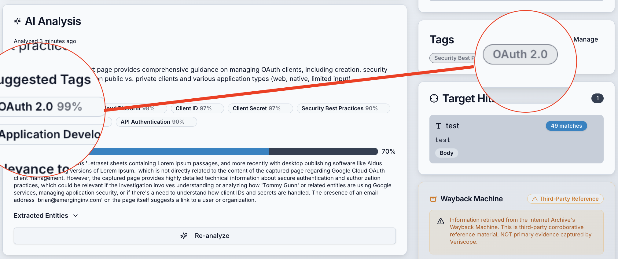 Veriscope uses artificial intelligence to transform raw digital captures into organized, meaningful intelligence. Automatically generated tags, summaries, and contextual insights help you understand what matters—without manually reviewing every file.